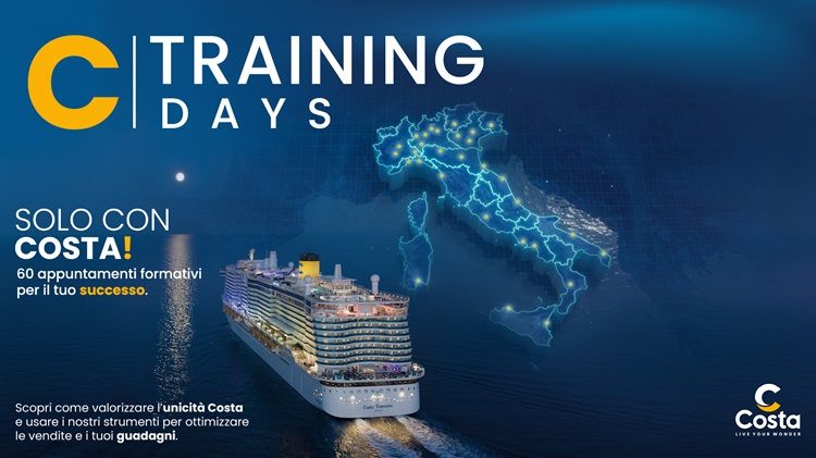 Costa Crociere apre il nuovo anno rafforzando il proprio impegno a fianco delle Agenzie di Viaggio con il lancio dei C|Training Days, un articolato programma di incontri dedicato ai Partner della distribuzione. Un tour formativo capillare che attraverserà tutta Italia da oggi fino al 4 febbraio e coinvolgerà 30 città, 60 sessioni di formazione, 1.800 Agenti e 240 ore complessive di training.