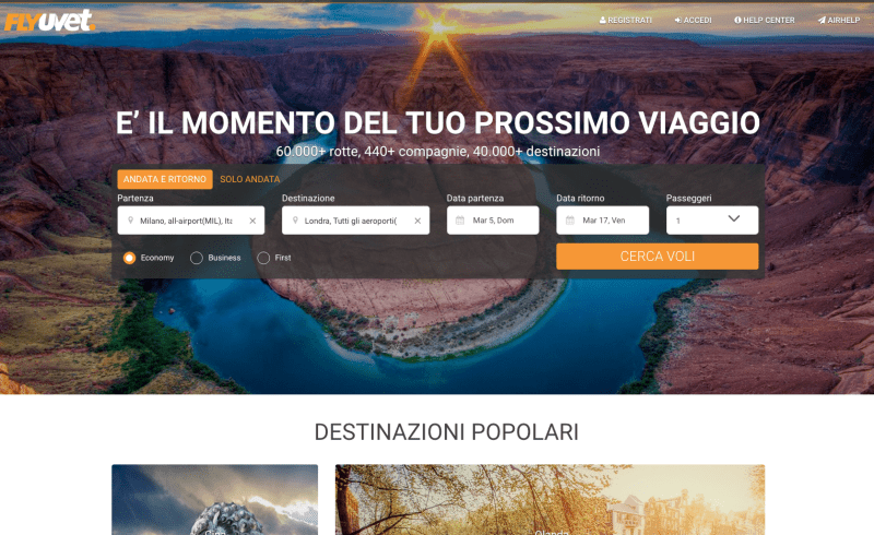 È online FlyUvet, la nuova OTA del Gruppo Uvet specializzata nella vendita di biglietteria aerea. La missione del sito è trovare e commercializzare i voli, sia di linea sia low cost, ai prezzi più convenienti del mercato. Attraverso una moderna tecnologia di proprietà stessa del gruppo Uvet, il potente motore di ricerca permette di scandagliare velocemente tutti i sistemi di booking delle compagnie aeree, trovando immediatamente le tariffe aeree più economiche e le soluzioni migliori disponibili in quel momento. Un’interfaccia utente semplice e intuitiva combina i risultati in base a orari e prezzi, rendendo la ricerca e la prenotazione dei voli facile anche per gli utenti meno esperti.